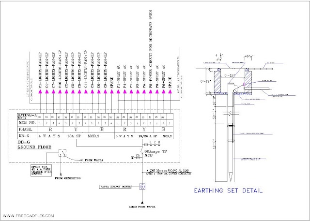 The electrical power earthing set CAD drawing with cable from diagram deta…