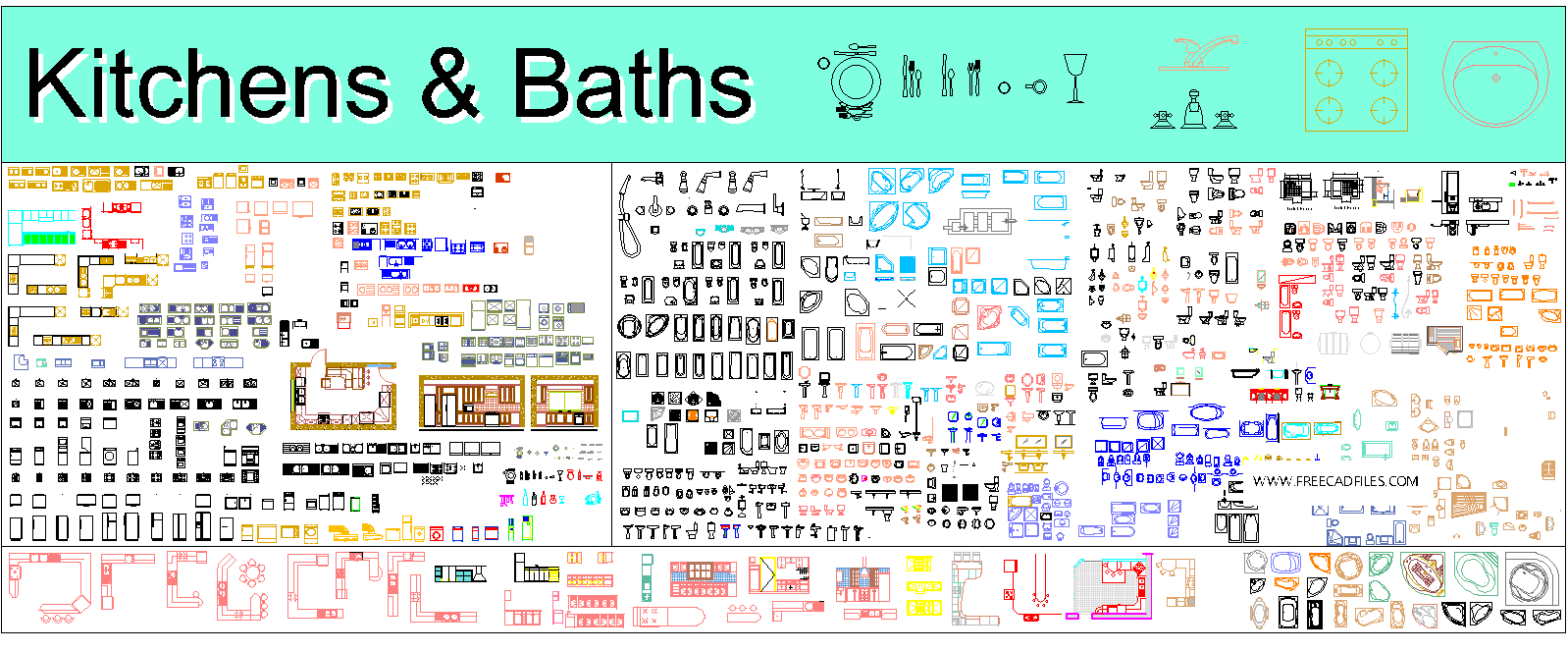 Kitchens and Baths Autocad Free Blocks CAD Template DWG