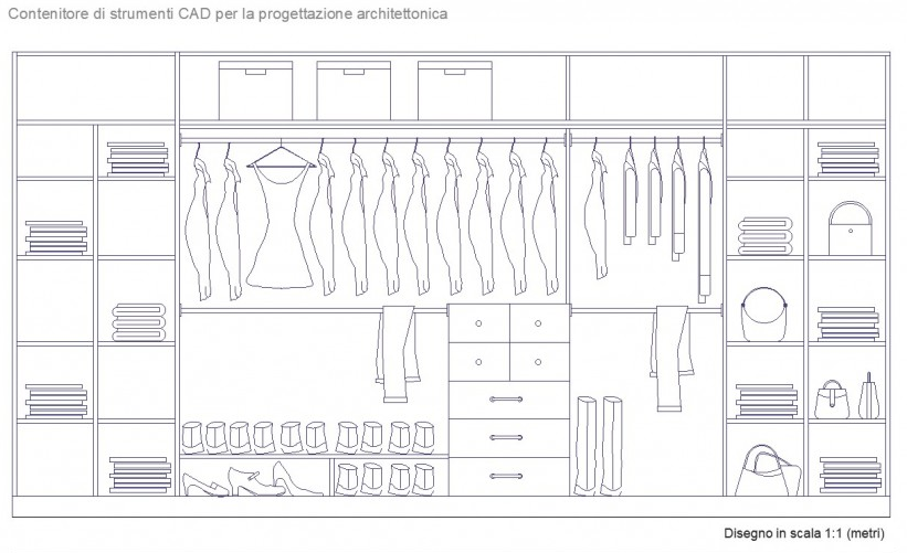 Detail cabina armadio dwg file, scale 1:100 detail, dower detail, cloth detail, front elevation detail, etc.
